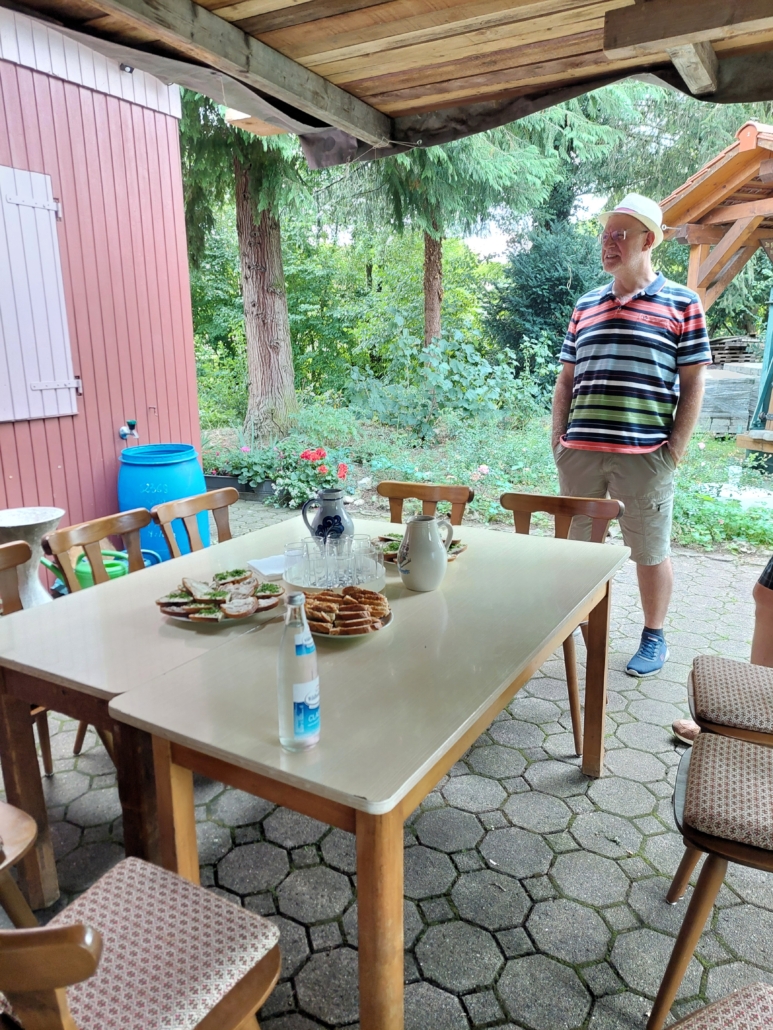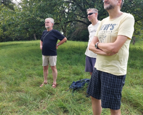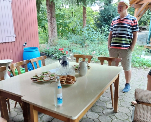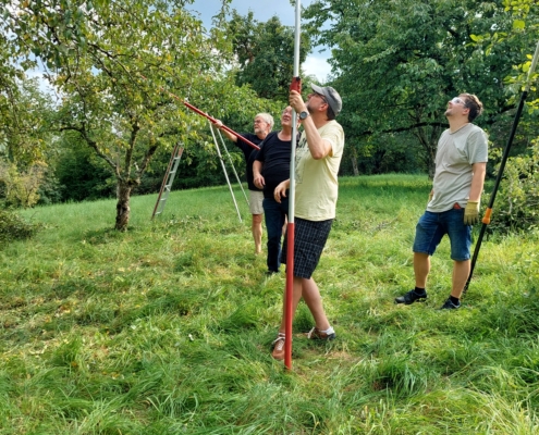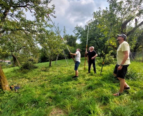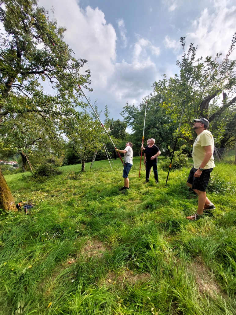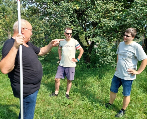 Die Teilnehmer waren während des ganzen Kurses sehr konzentriert und H. Klose hatte zahlreiche Fragen zu beantworten. Zum Abschluss ging es dann in unsere Vereinsheim, wo bei Käsebroten und vorzüglichem Most der Sommerschnittkurs 2025 einen gemütlichen Ausklang fand.